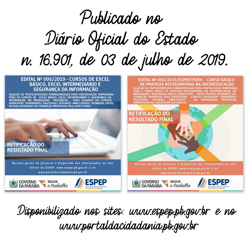 Retificações dos Editais nº006 e 009/ESPEP/FDRH